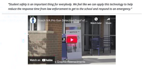 The key product update was AI alarm verification (cloud-based review of gun-detection events), explained using an “instant replay” analogy: