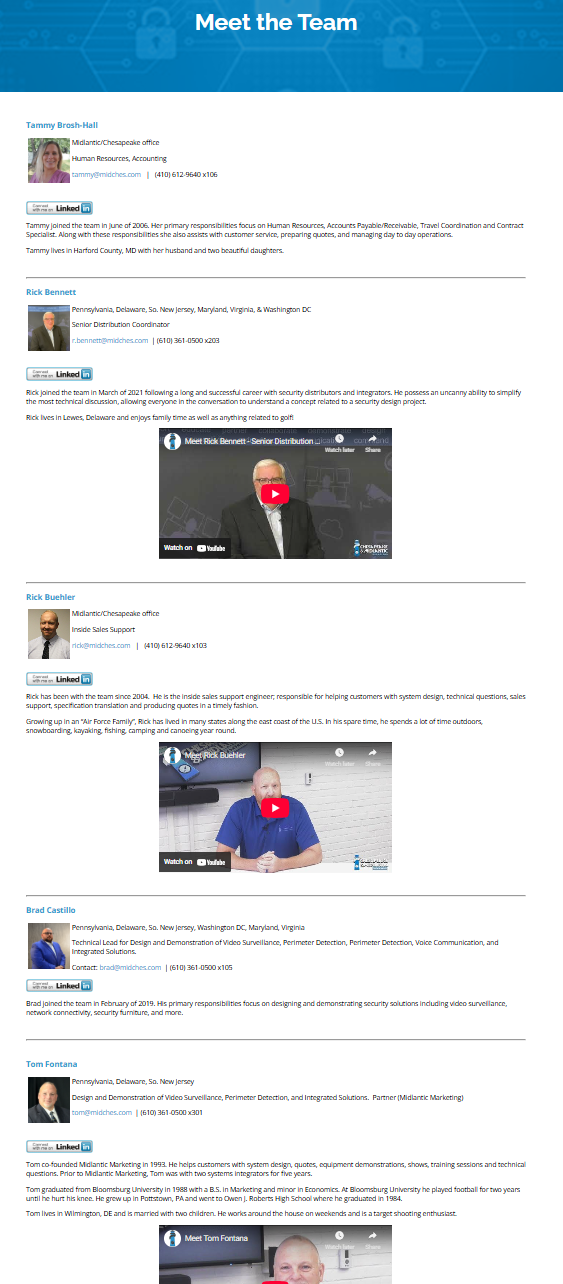 What stands out most is Sam’s hands-on, “figure it out first” approach. When an integrator recently needed help programming door prop alarms, Sam built and tested the workflow on his own demo kit, then walked the technician through the setup step by step until the issue was resolved. It is a pattern Tom notes repeatedly: Sam is willing to get his hands dirty, speak the language of both technicians and sales teams, and support everything from lab work and equipment installs to field training, meetings, and manufacturer engagement. Whether he is diving into intrusion platforms like the G Series and B Series or collaborating with the broader MidChes team, Sam’s focus is consistent: be a practical resource, bring clarity to technical challenges, and help customers deliver systems that ultimately protect people.